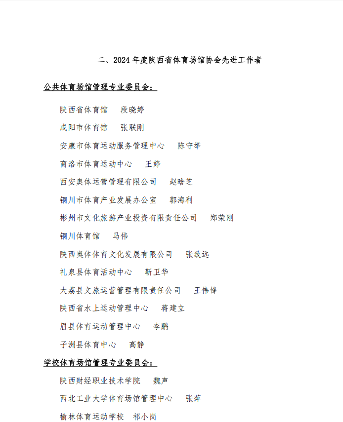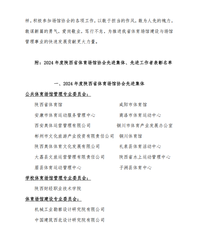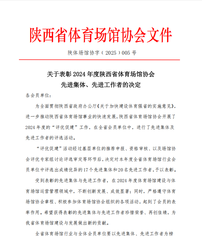 关于表彰2024年度陕西省体育场馆协会 先进集体、先进工作者的决定