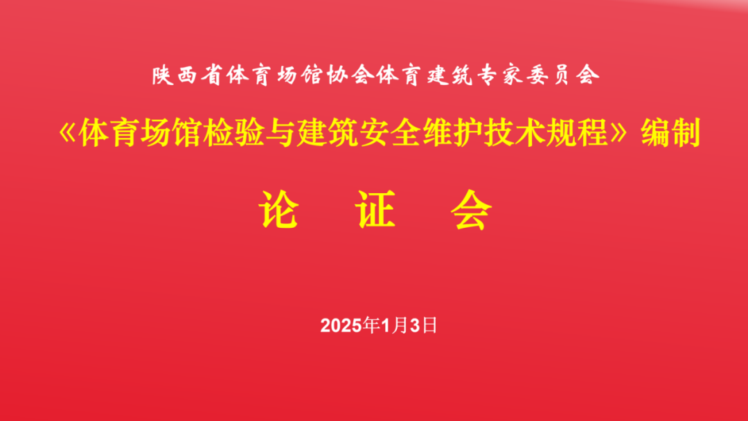 2025新年伊始,陕西省体育场馆协会体育建筑专家委员会在西安建科大厦,召开《体育场馆检验与建筑安全维护技术规程》编制论证会。该《技术规程》的编制在陕西省体育局场馆处的指导下,攻克了场馆建筑安全多学科交叉的技术难题。此次论证会的召开,标志着我国首部体育场馆建筑安全技术规范即将问世。