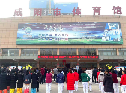 2022年2月15日,陕西省体育场馆协会主席王德炜教授、监事长谢尊贤博士等一行四人为公共体育场馆管理专业委员会副主任单位咸阳市体育馆授牌暨业务培训。咸阳市体育局局长高航校、副局长刘美娟、群体科长吴整社及咸阳13个市、区、县体育局分管局长及各场馆负责人参加了本次活动。