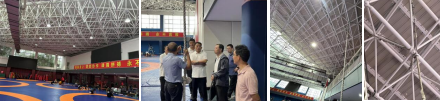 督导检查组专家对长宁射击中心的体育建筑设施基础沉降情况,对田径馆墙体开裂情况进行了现场查看,对体操、武术等馆利用钢构屋架做辅助训练等不规范的情况,以及发现的其它安全隐患问题提出了注意事项与整改意见。